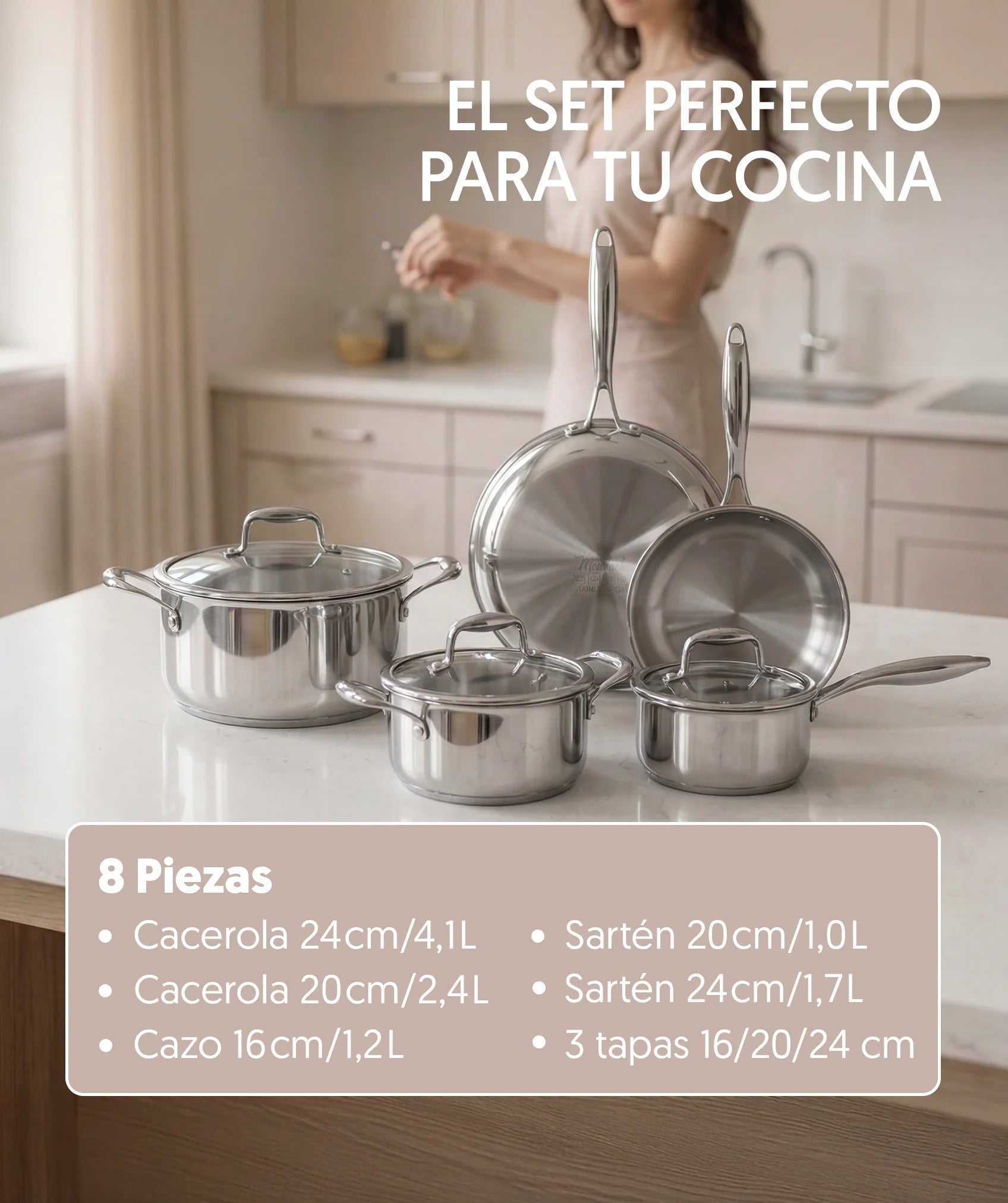 🍳 Set de 8 piezas en acero inoxidable