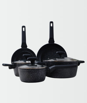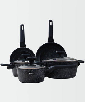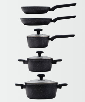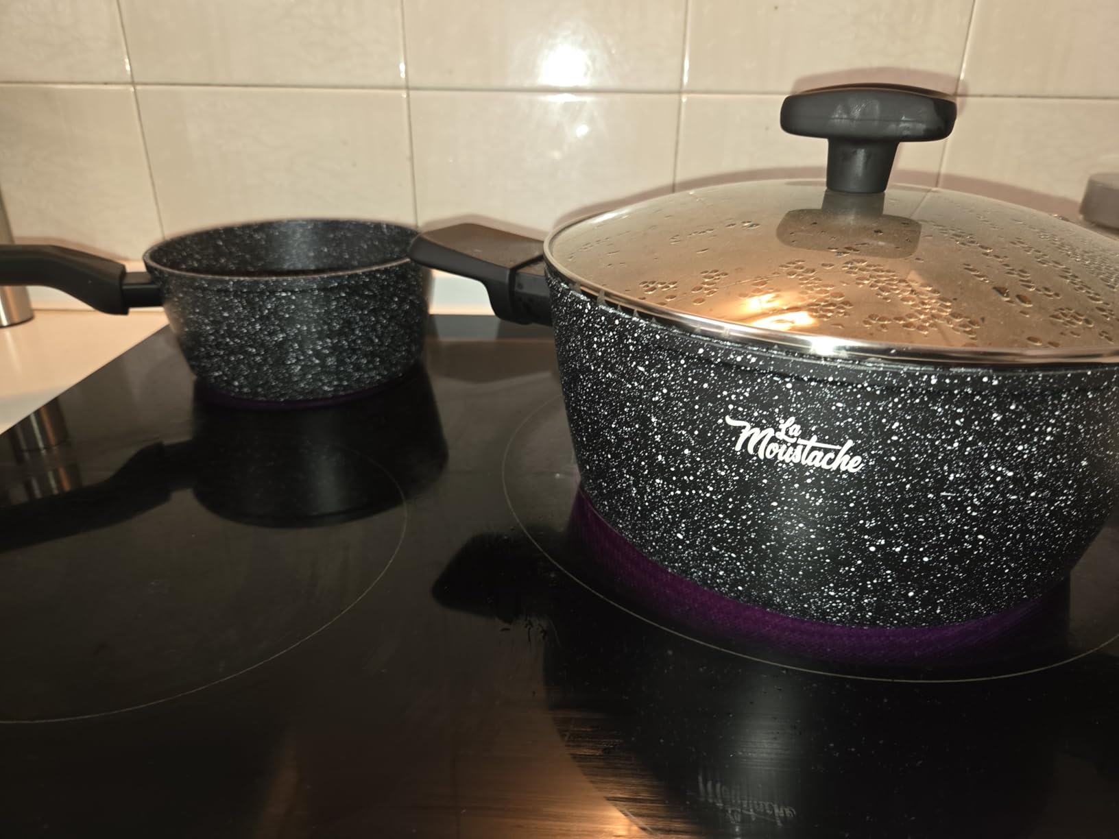 Nuestra batería es apta para todo tipo de cocinas, incluidas inducción, gas, placa eléctrica y vitrocerámica, lo que garantiza un rendimiento óptimo en todos los fuegos. También se encuentra libre de PFOA, PFOS, plomo y cadmio.