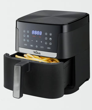La freidora de aire cuenta con un amplio canasto de 7 litros, sistema de precalentamiento y apagado automático al finalizar la cocción, garantizando máxima eficiencia en cada uso. Con una potencia de 1800 W, el aire se calienta rápidamente para que puedas disfrutar de tu comida sin largas esperas.