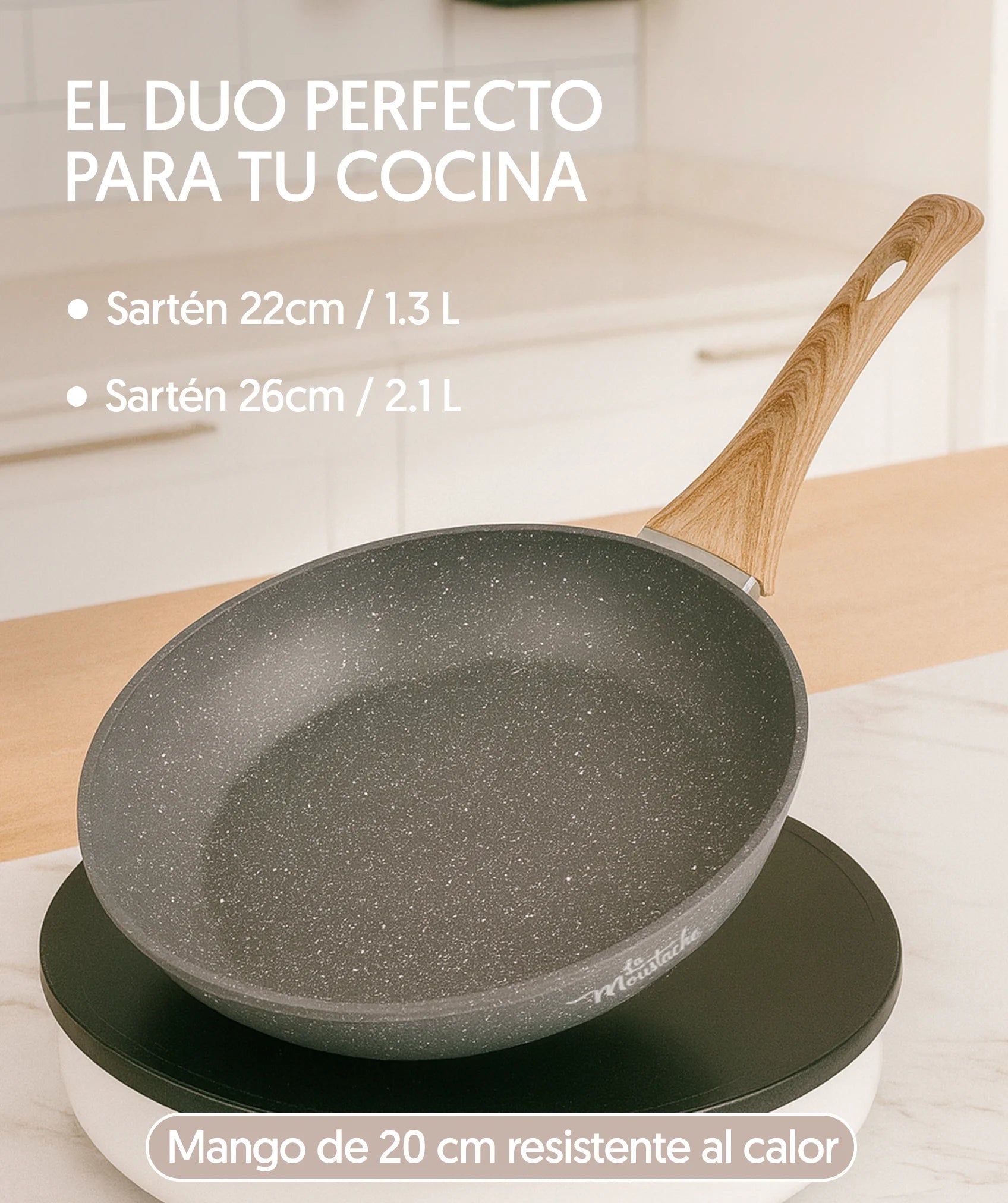 Este set incluye 2 sartenes de 22 cm y 26 cm que evitan la adhesión de la grasa y otros agentes externos contaminantes. ¡Disfrutarás del tamaño ideal para una amplia variedad de preparaciones!