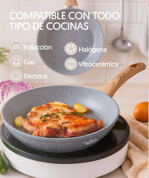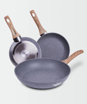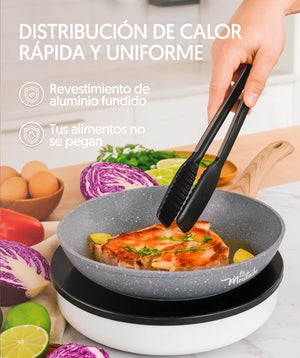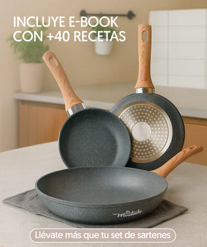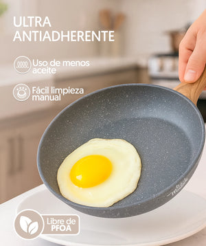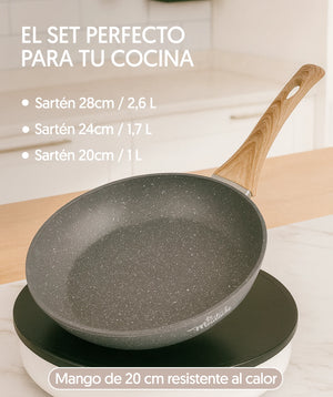Este set incluye 3 sartenes de 20 cm, 24 cm y 28 cm que evitan la adhesión de la grasa y otros agentes externos contaminantes. ¡Disfrutarás del tamaño ideal para una amplia variedad de preparaciones!