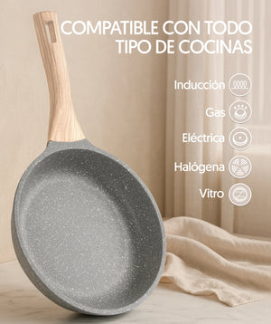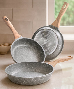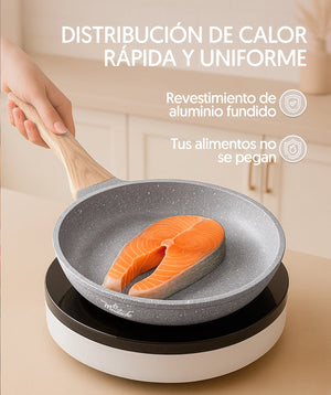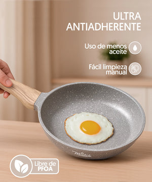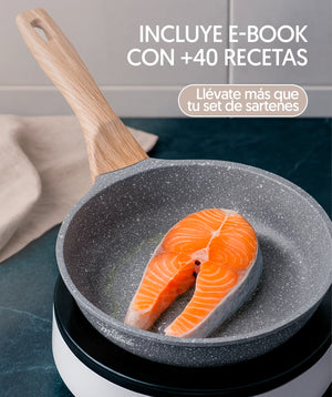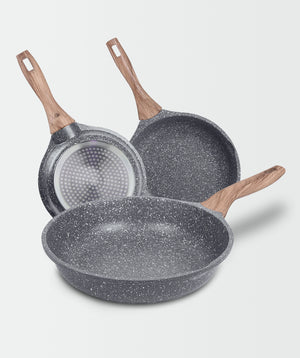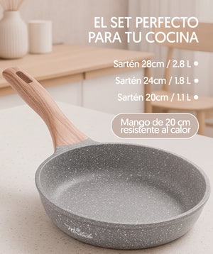 Este set incluye 3 sartenes de 20 cm, 24 cm y 28 cm que evitan la adhesión de la grasa y otros agentes externos contaminantes. ¡Disfrutarás del tamaño ideal para una amplia variedad de preparaciones!