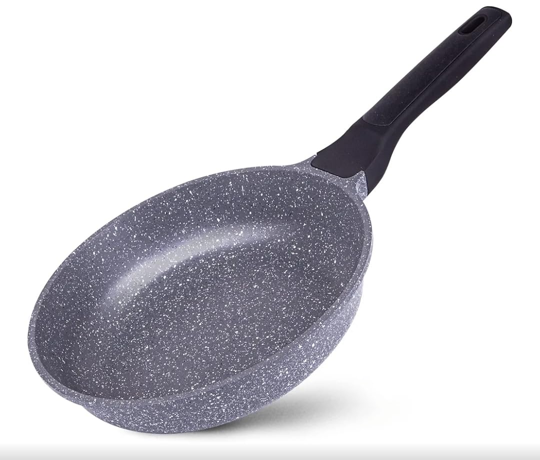 Sartén antiadherente, libre de PFOA, resistente a los arañazos y a numerosos tipos desgaste, lo que prolonga su vida útil.